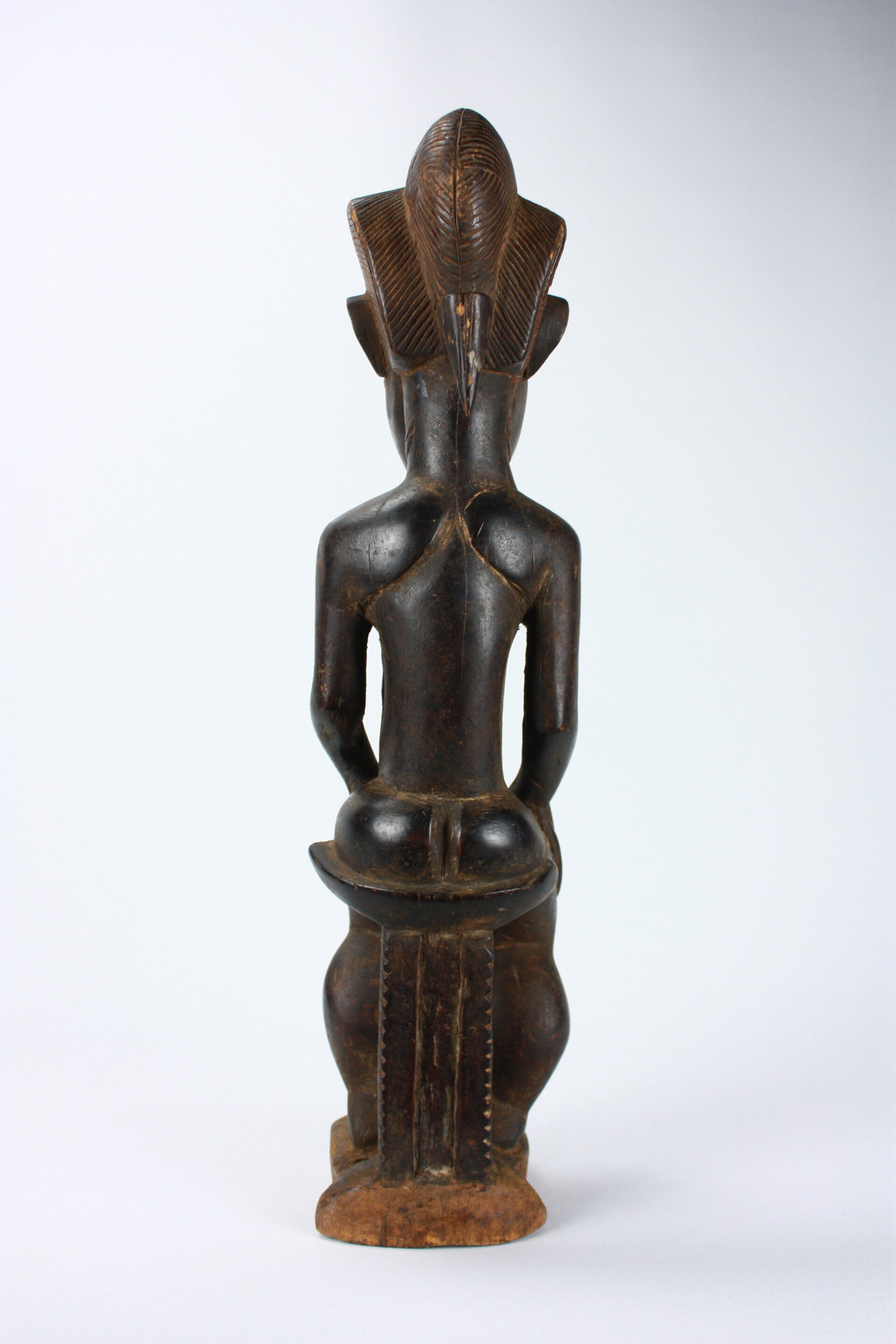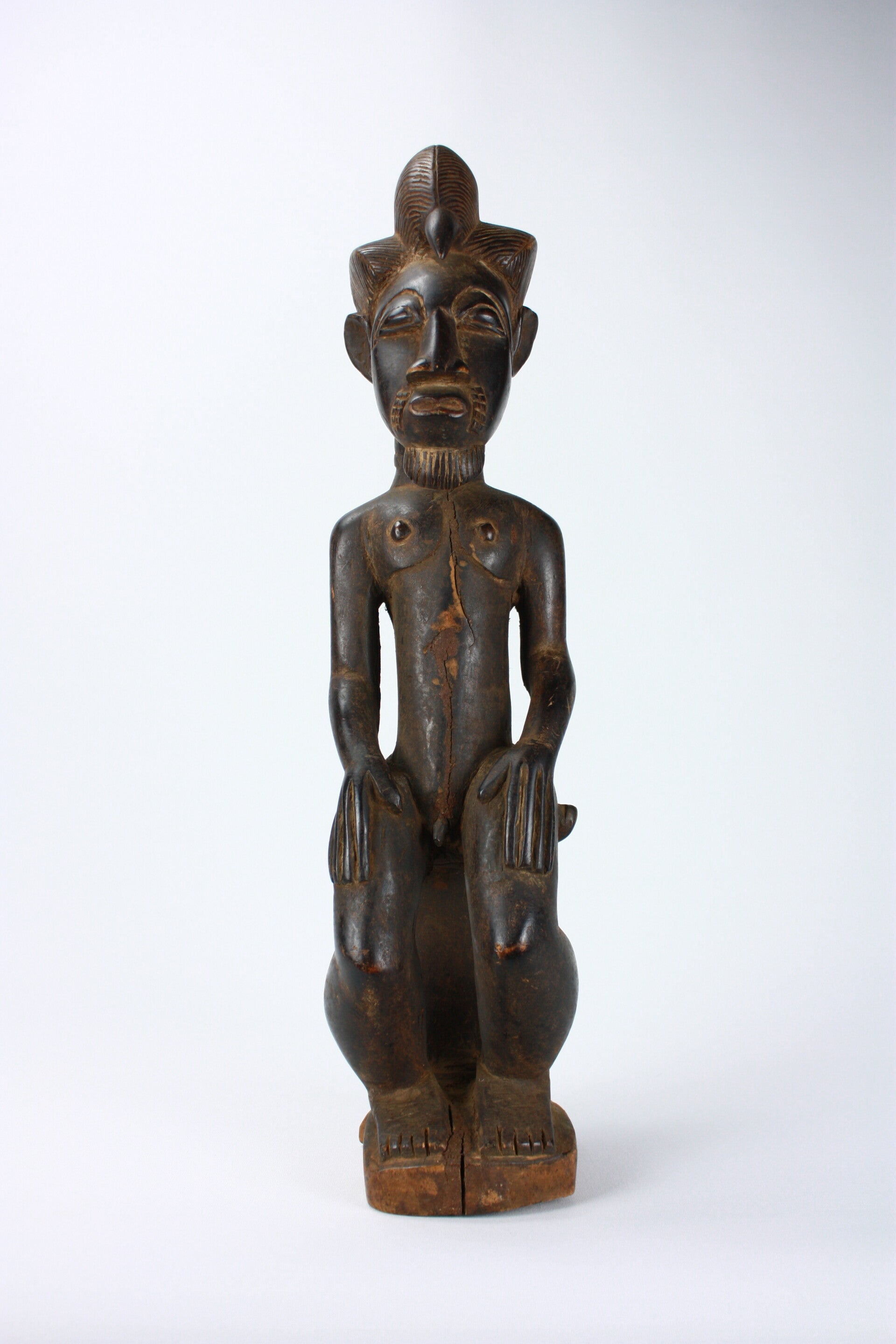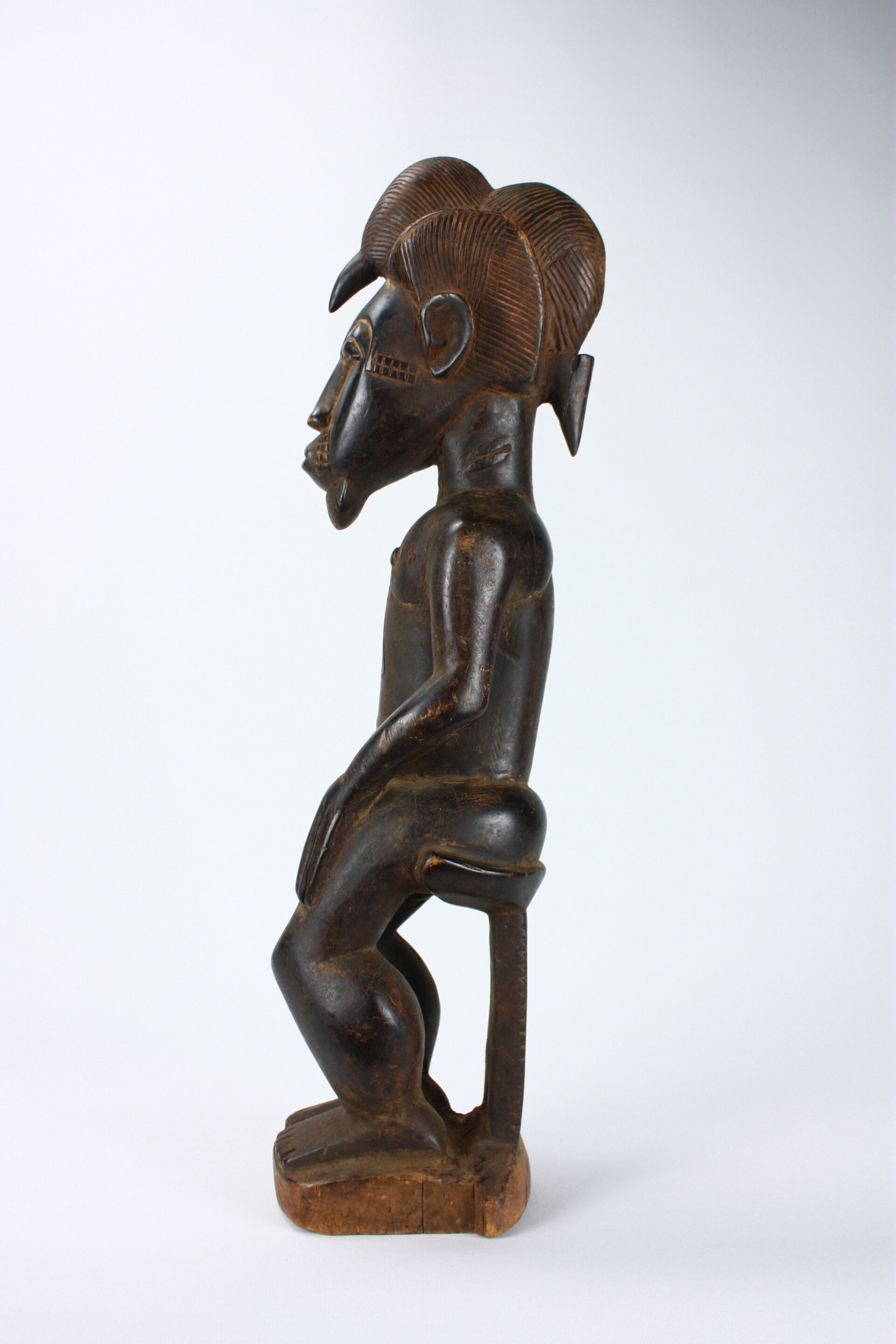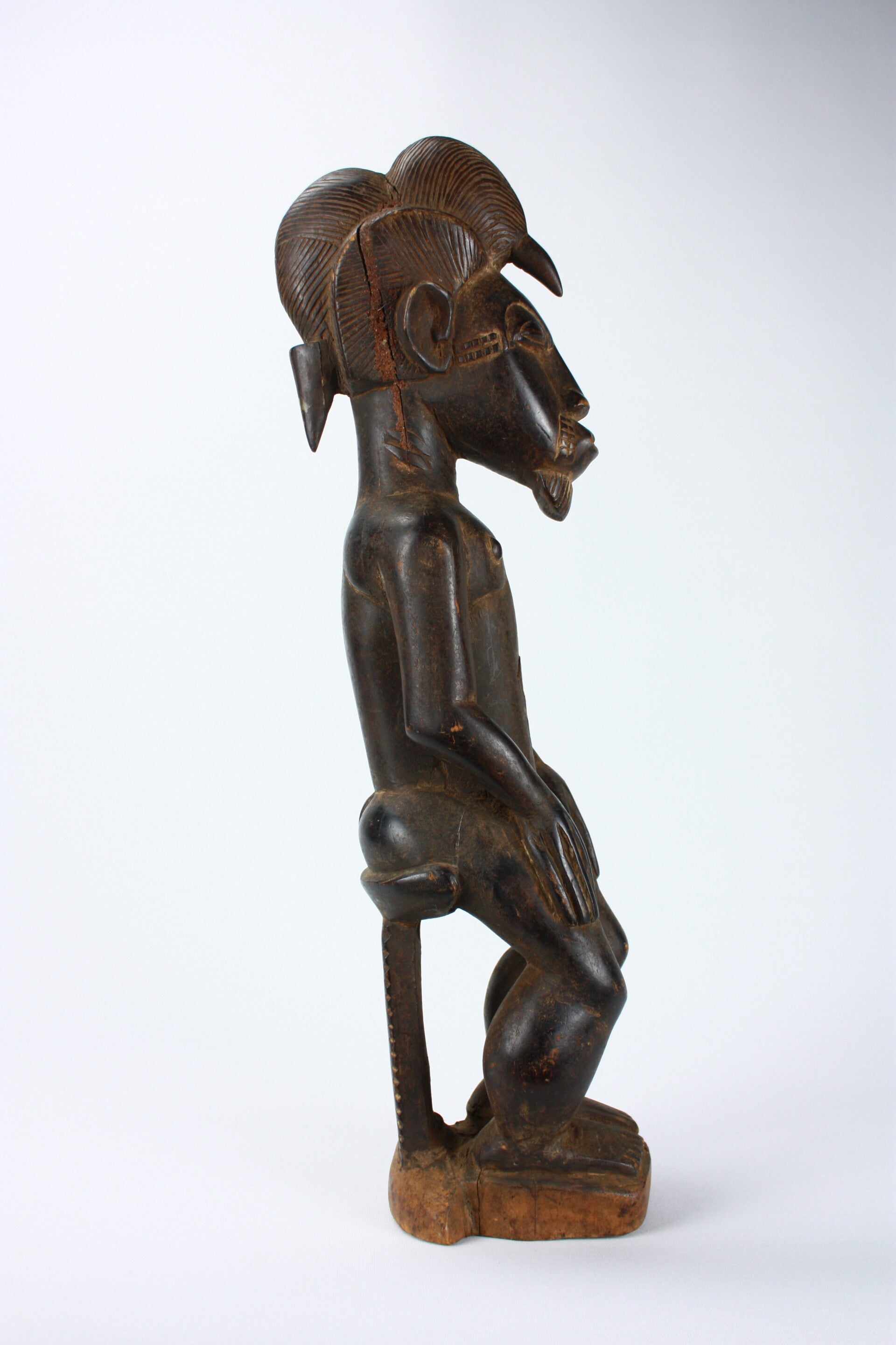 An impressive standing male figure of the Senufo culture (Ivory Coast), distinguished by its elongated form and powerful vertical presence. Senufo sculptures often relate to ritual and social structures, and this piece reflects the restrained strength and formal clarity characteristic of the tradition. An important work for collectors of northern Ivorian art.