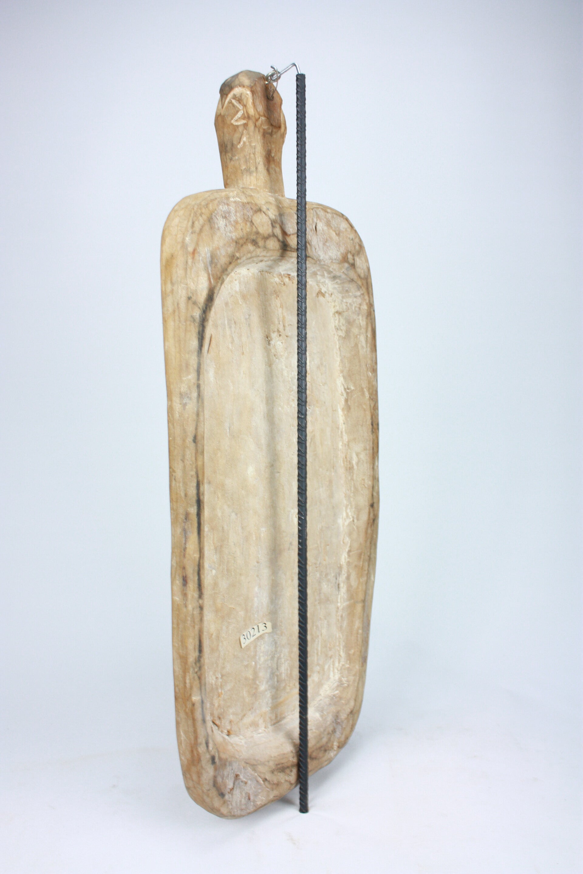 Asmat shields were historically used in warfare and ceremonial contexts, embodying ancestral power and serving as protective emblems. Examples of reduced scale such as this were commonly collected during the mid-20th century.