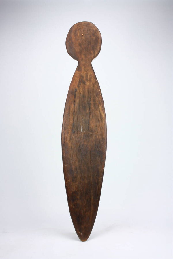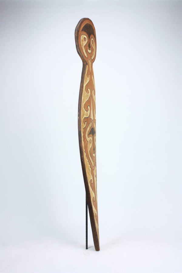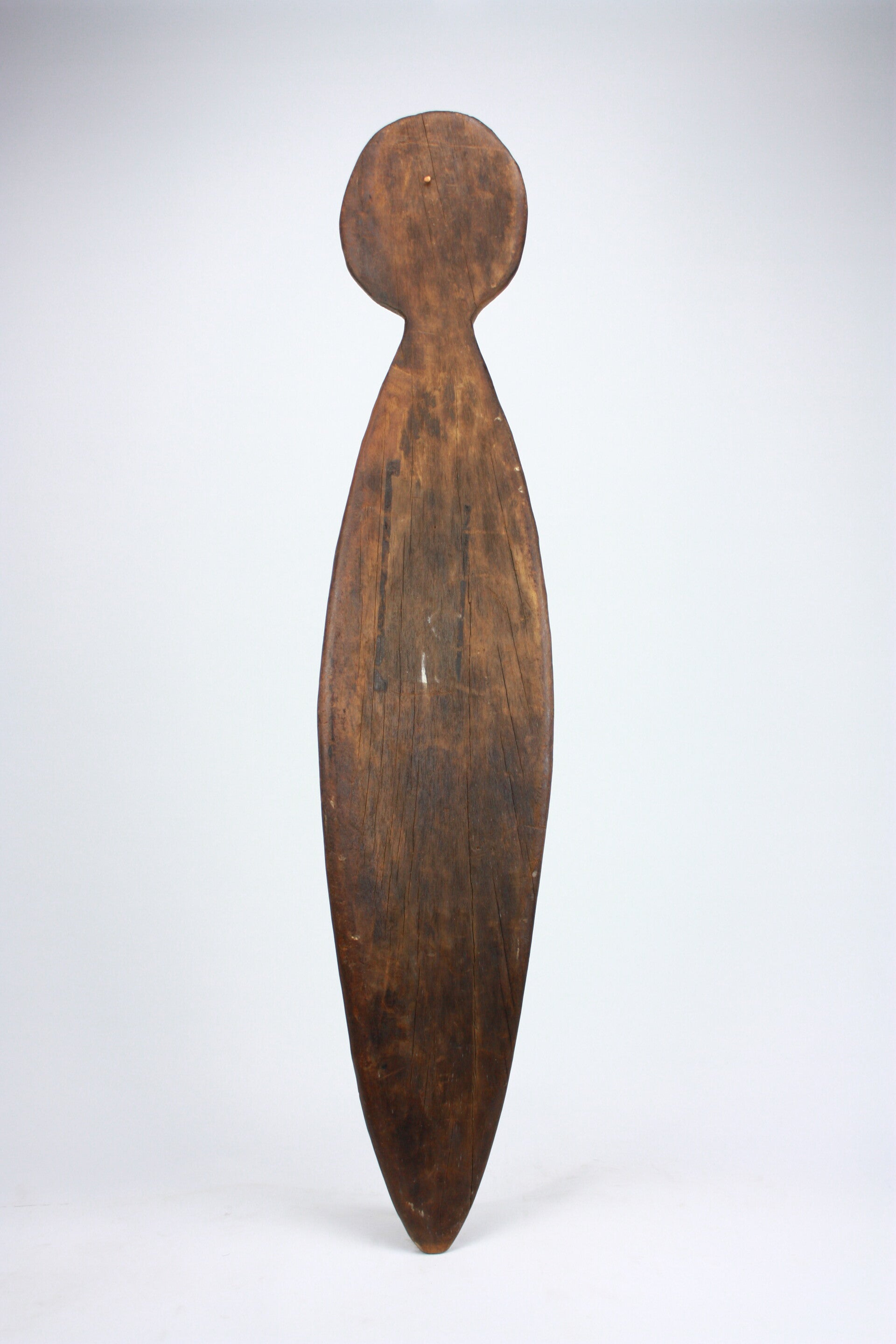 Gope boards were suspended in men’s ceremonial longhouses and were believed to embody protective clan spirits. They played an important role in ritual life and communal identity.