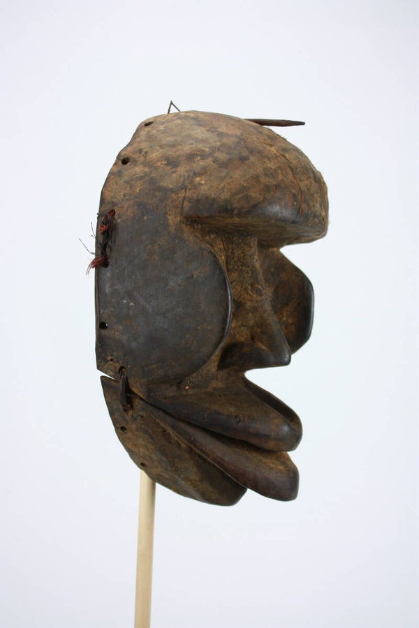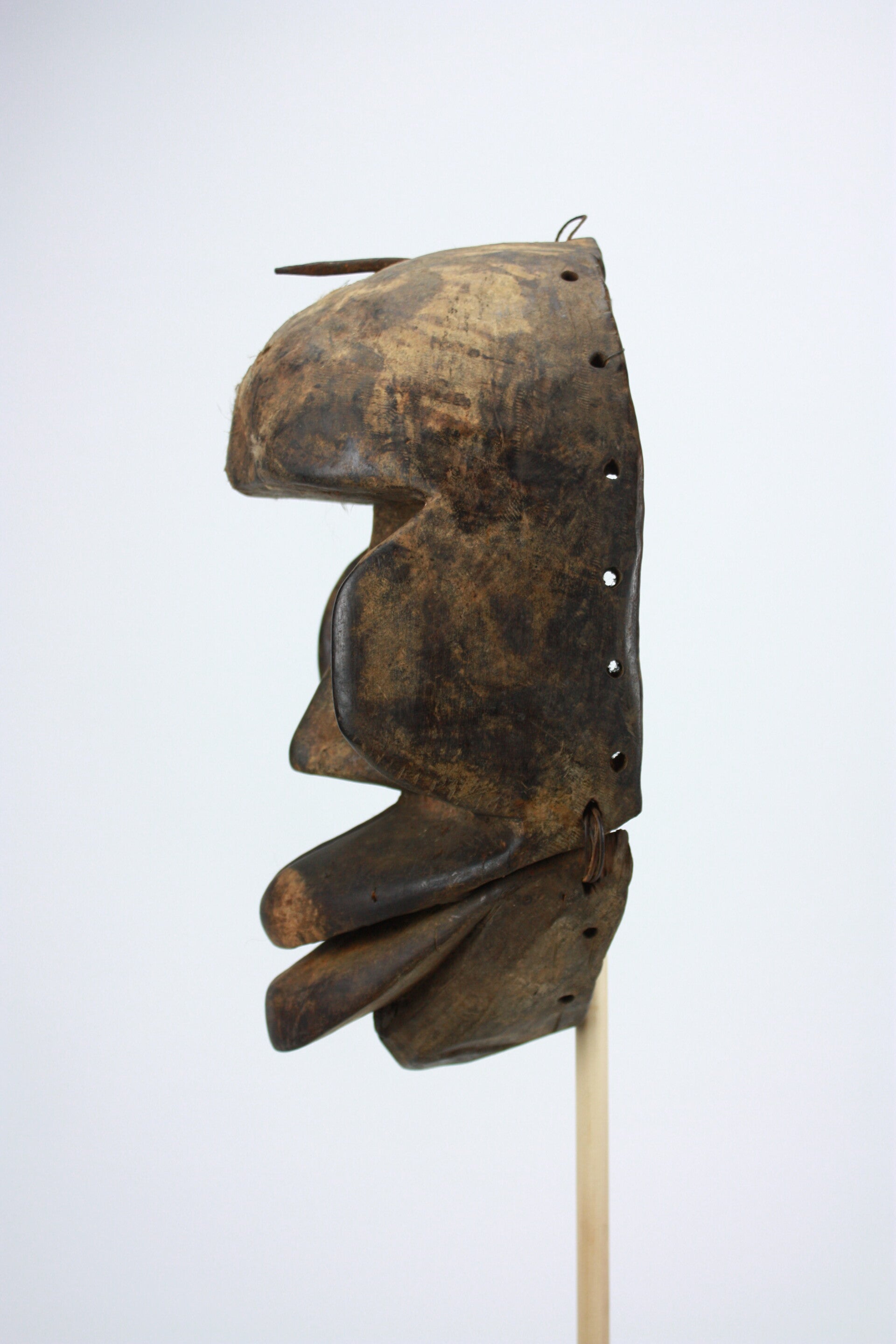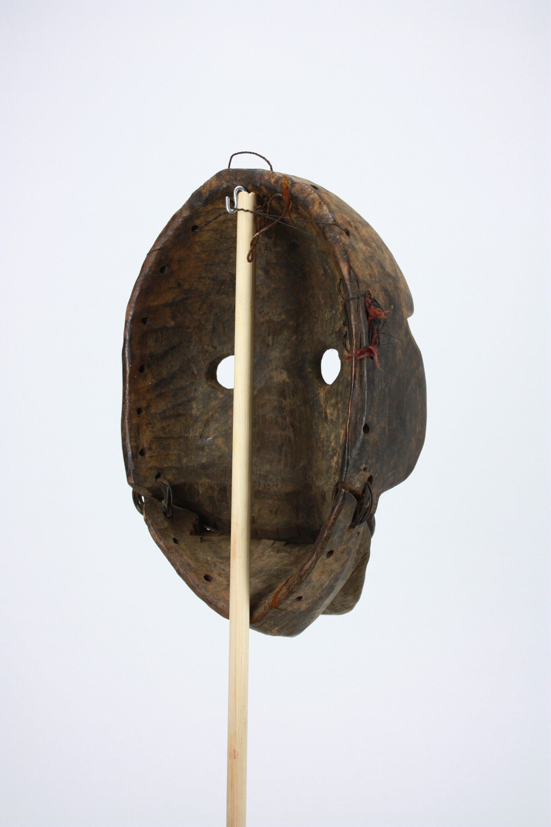 Kran “Kagle” masks are associated with energetic village performances and entertainment contexts, where movement and exaggeration of expression were central elements. The articulated mouth would have contributed to speech-like motion and heightened theatrical effect.
