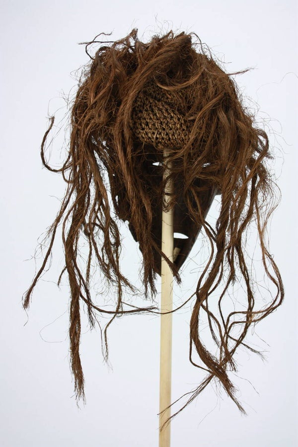 Wood with dark patina and fibre coiffure.