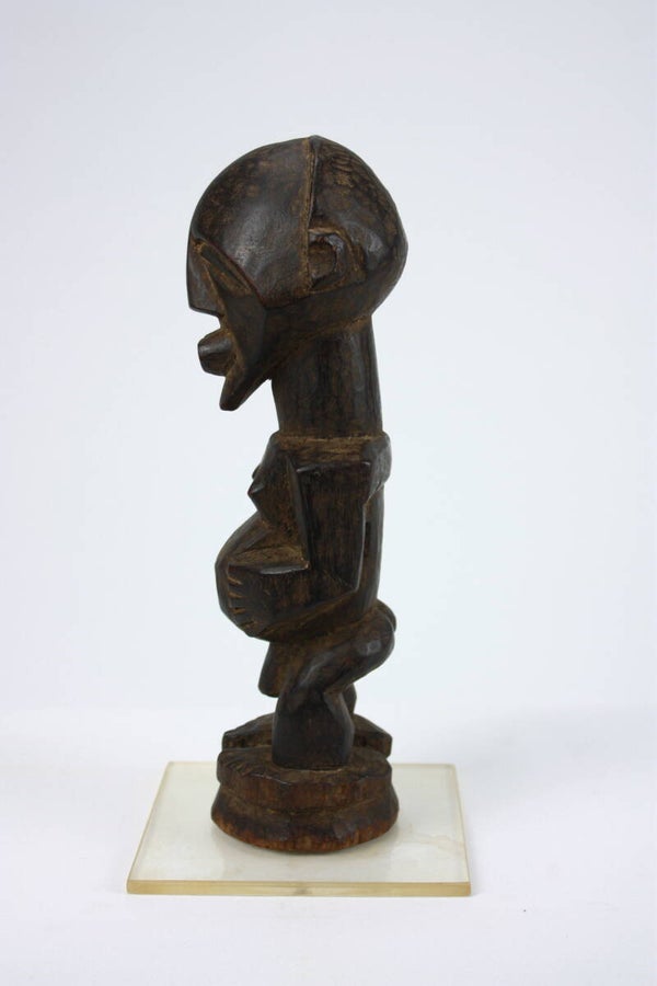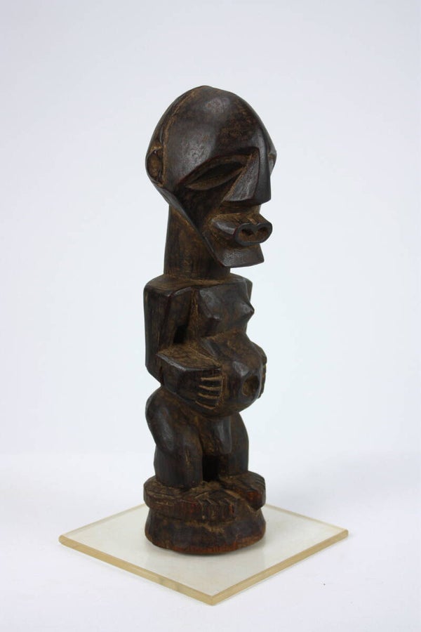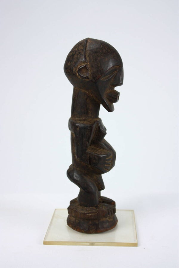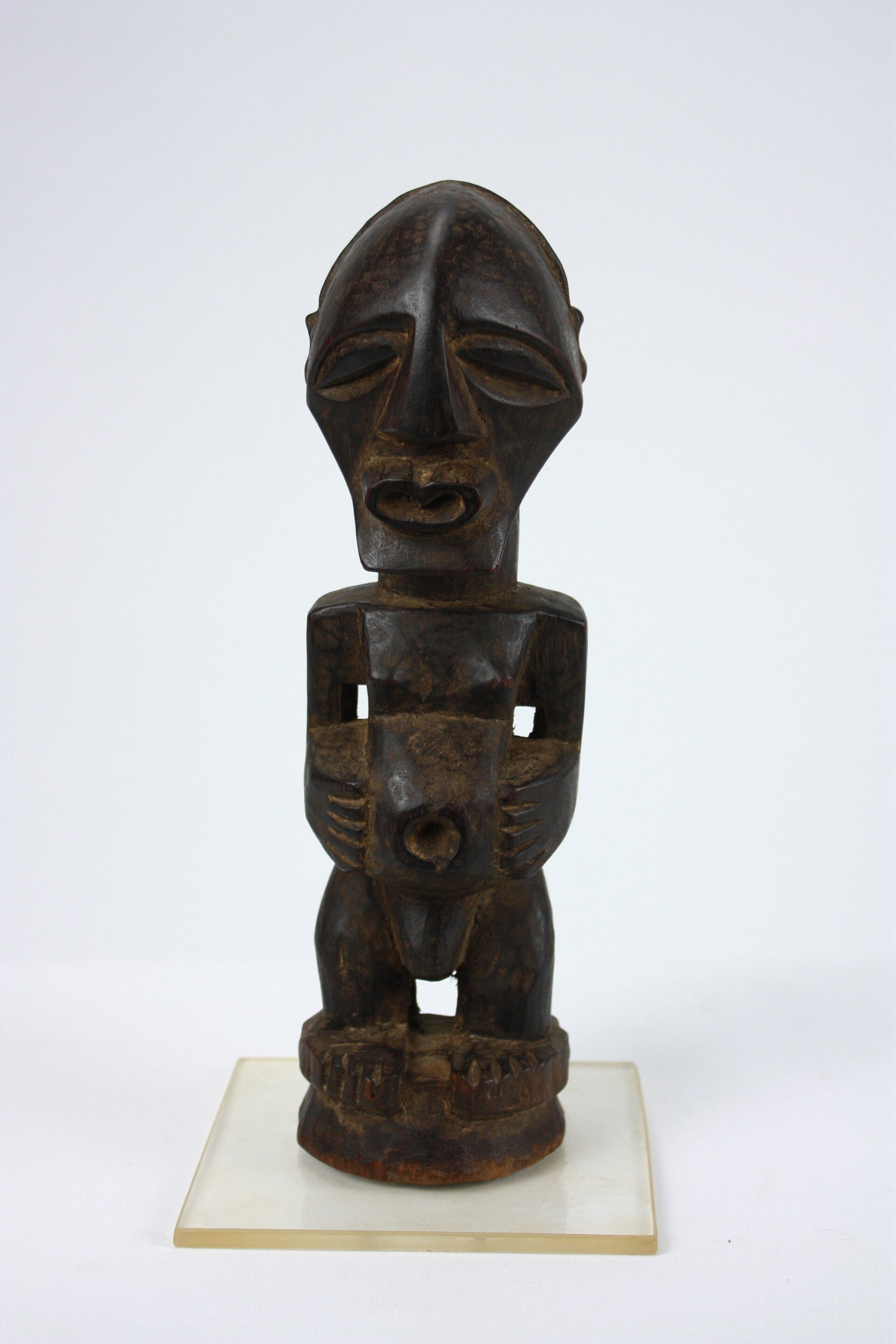 Such figures served protective and ritual functions within Songye communities, embodying spiritual forces activated by a ritual specialist.